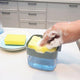 Soaply™ is a kitchen dishwashing soap dispenser that allows your scrubber to be kept on top and directly absorb the soap into the scrubber.