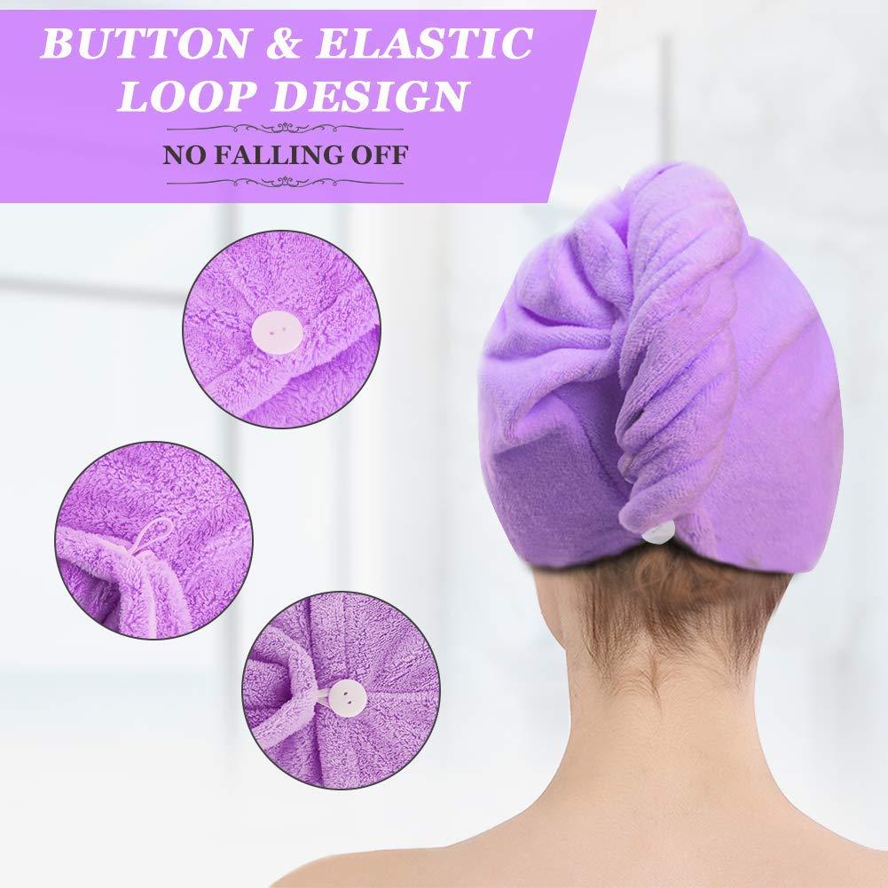 Easy to Use: Provided with an elastic loop and a button to roll and hold your hair in one place. The hair towel stays put without moving or falling off while you get ready and dress up.
