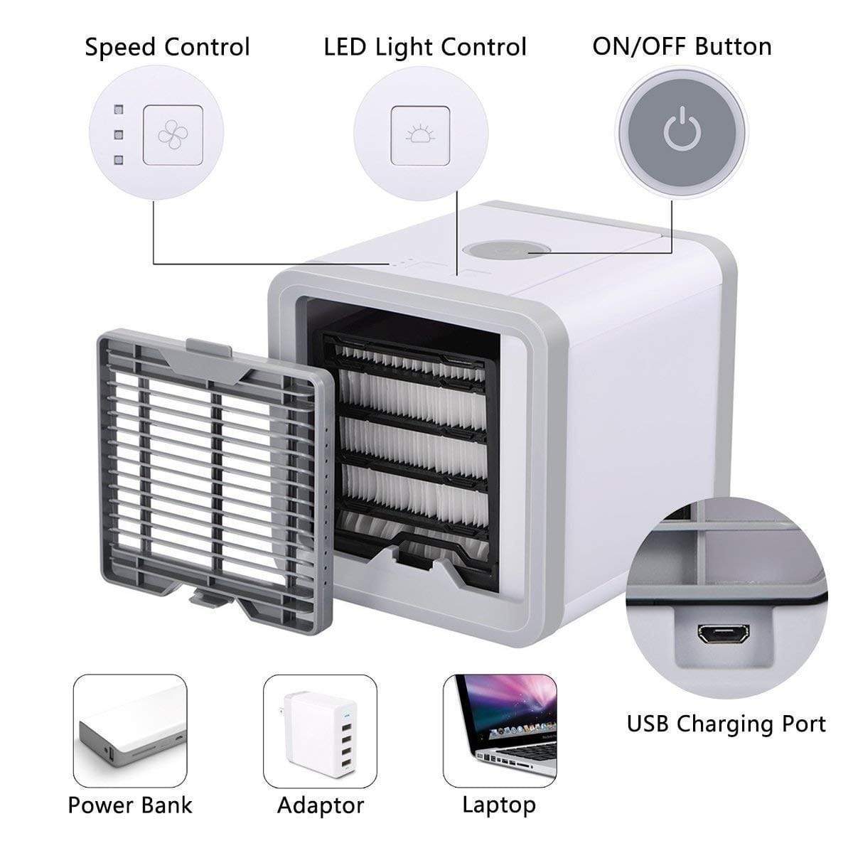 Unlike fans that just move warm air around your room, or air conditioning units that cost a fortune, This Mini USB air cooler is a complete solution that provides Cooling, Comfort, Control, and Convenience, no matter where you are!