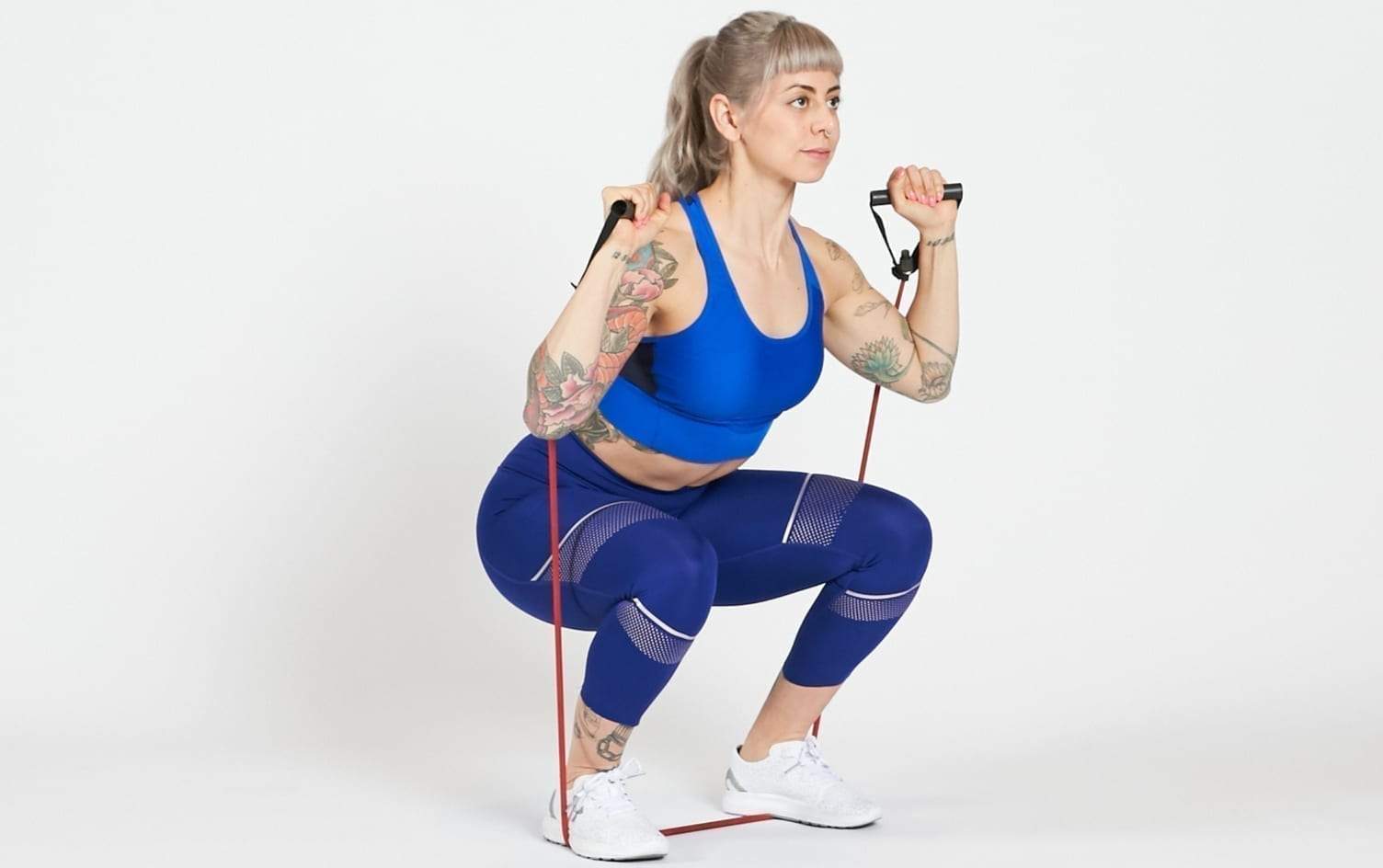 Perform Numerous Exercises: You can perform bicep curls or overhead presses, do tricep pushdowns, chest exercises, or shoulder rotations. You can also do exercises on the floor like seated bicep curls, reverse crunches, and glute bridge.